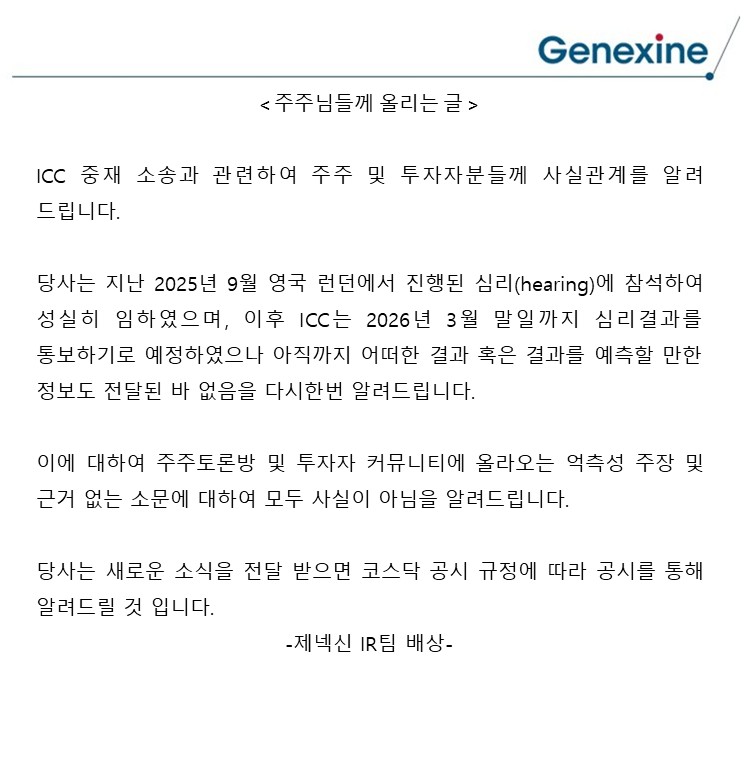 ICC 중재소송 관련 추측성 소문에 대한 공지