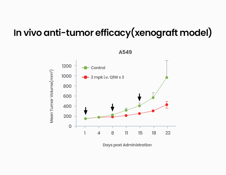 - 2폐암 이종이식 동물모델에서 강력한 in-vivo 효능 확인